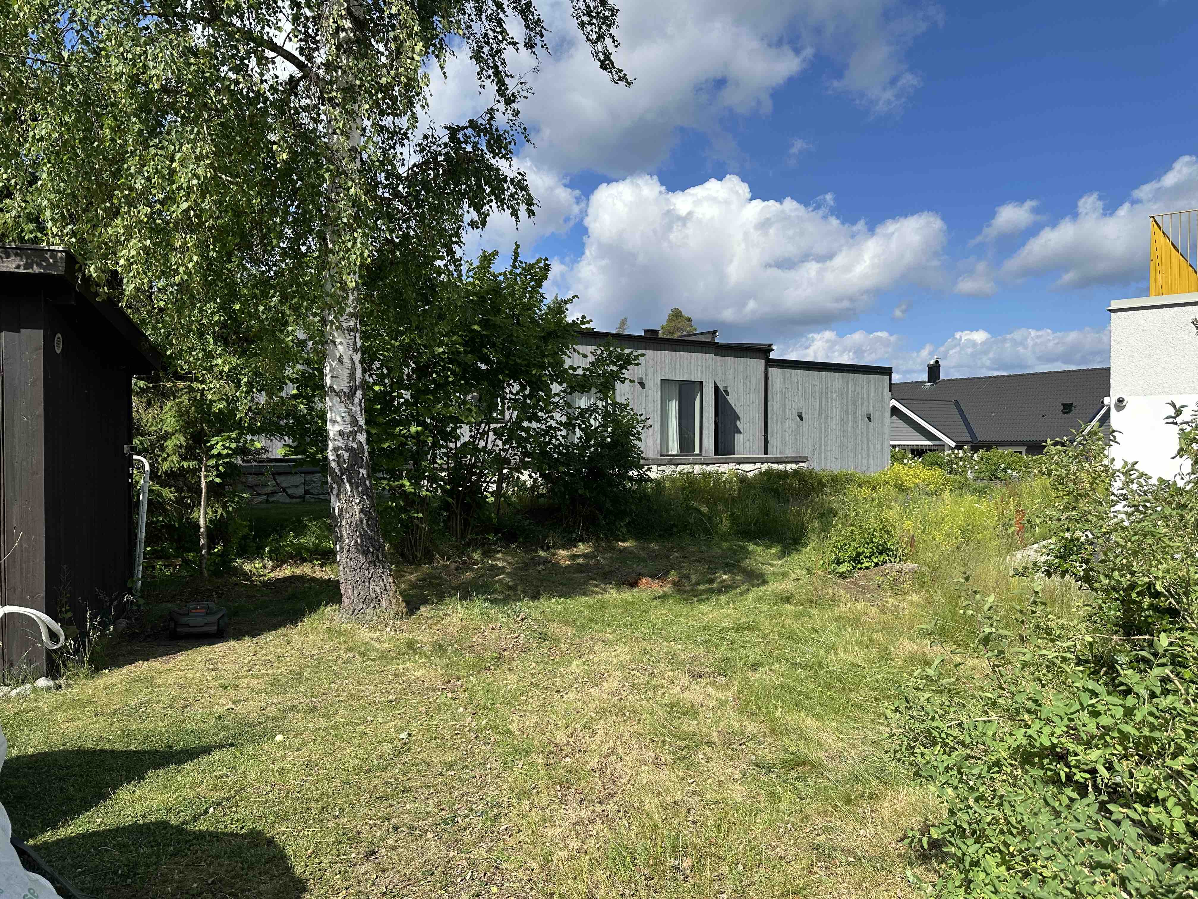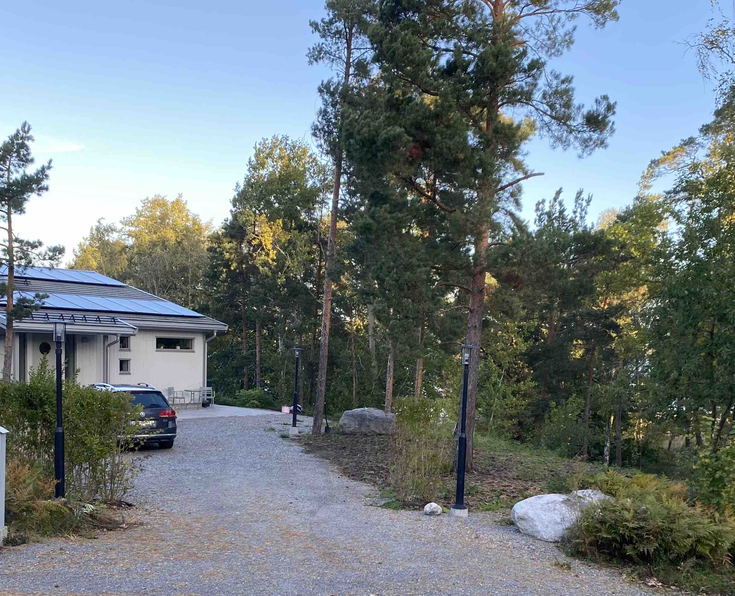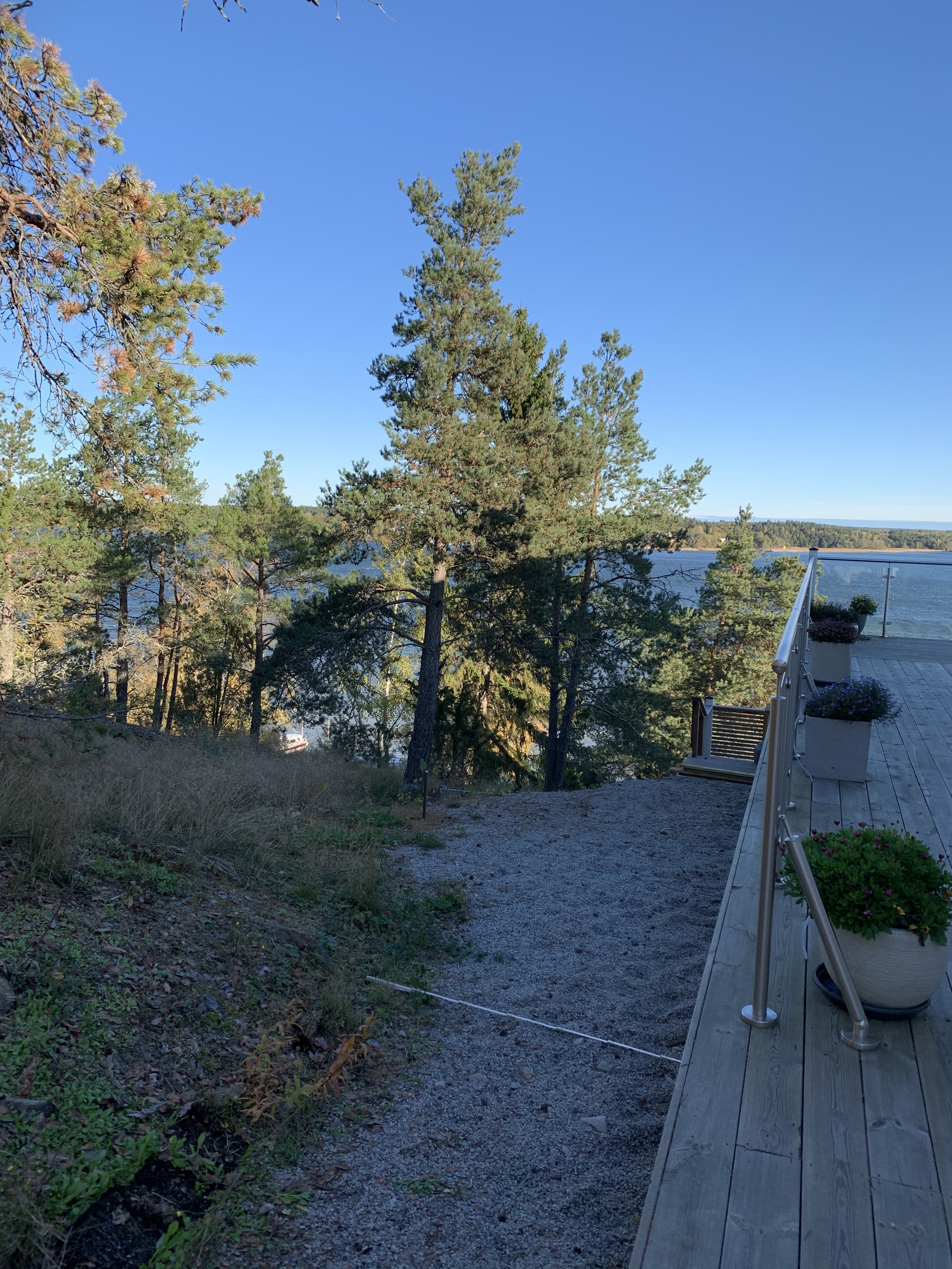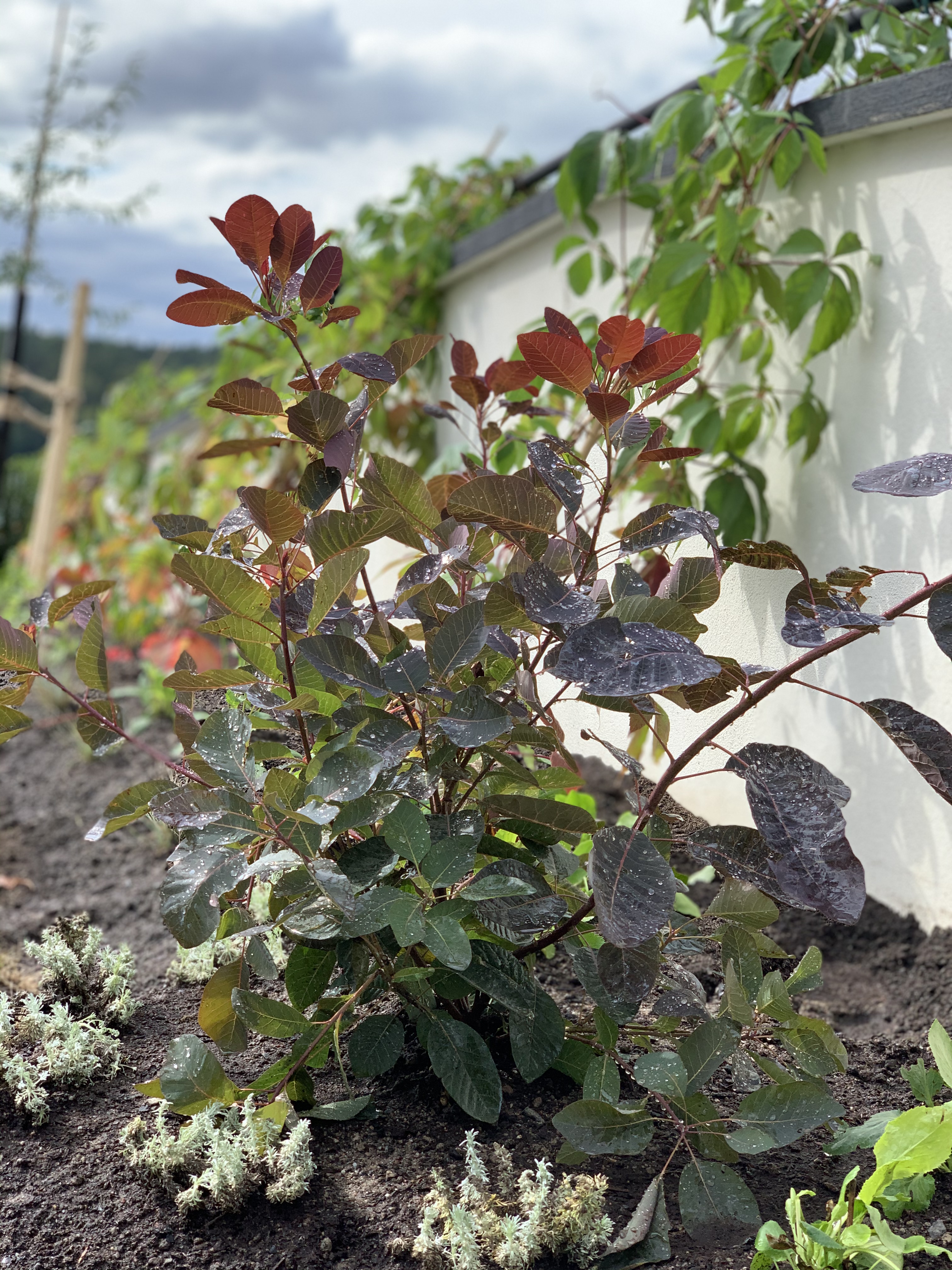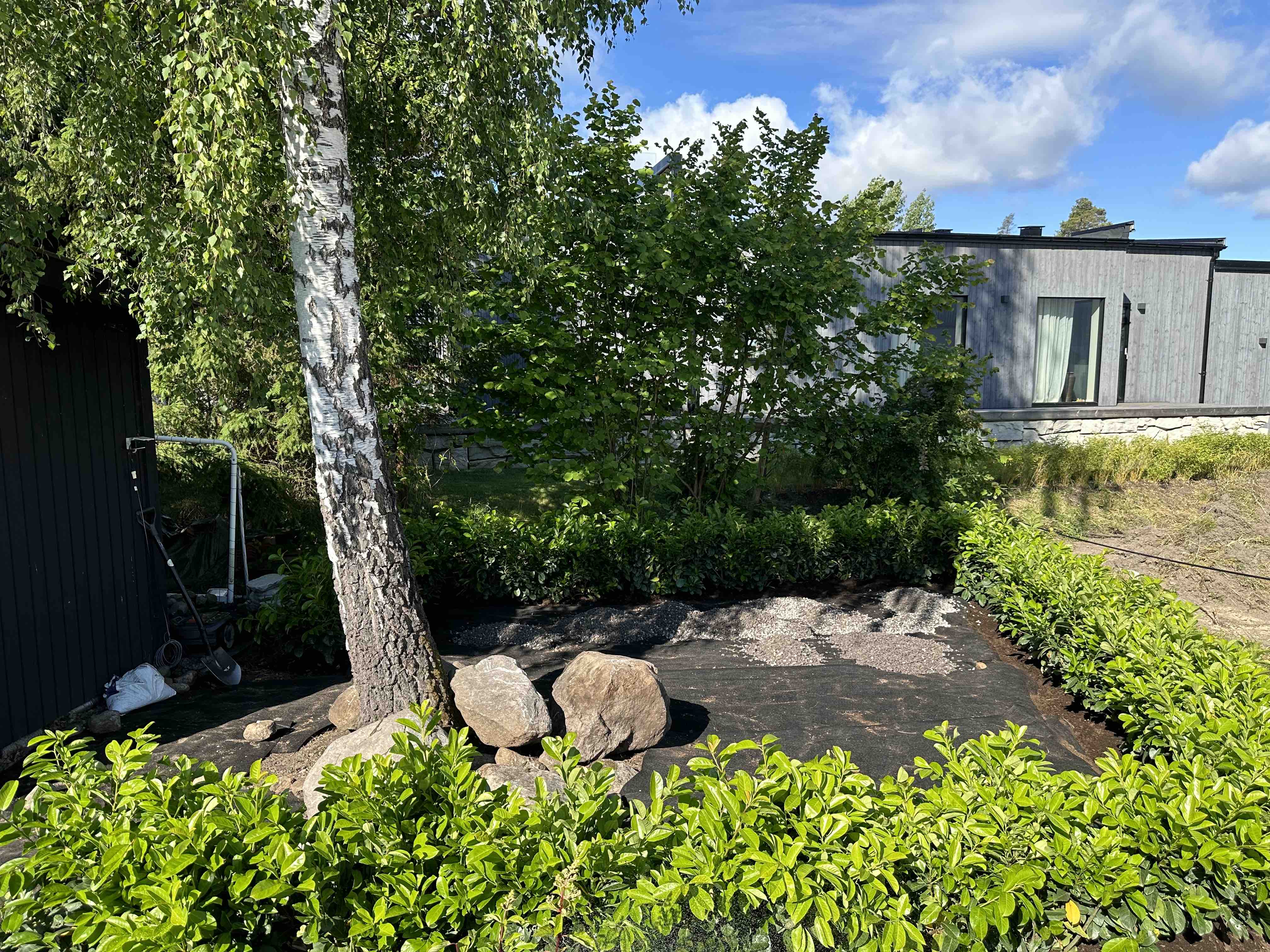 Ibland kan en tomt bli lite övermäktig och det är svårt att veta var och hur man ska börja. Här började vi med att rama intomten med en häck, valet blev aronia som är ursnygg på hösten, får nyttiga bär och ger oss här en mjuk övergång till allmänningen och skogen. Det blev en hel del rensning, det flyttades stenbumlingar och grusgången fick sig ett rejält ansiktslyft. Perennerna och gräsmattanvar på plats innan sommaren och semester tog vid.
